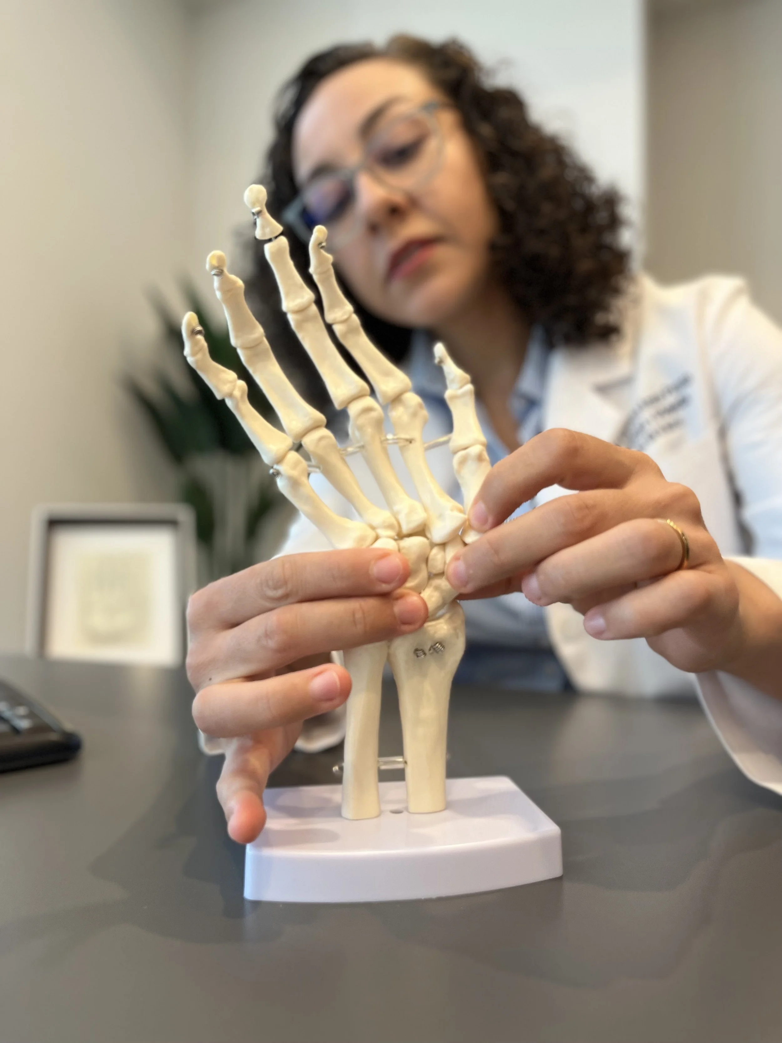 Cirujana ortopedista con alta especialidad en cirugía de mano, dedicada al diagnóstico y tratamiento de padecimientos que afectan la función del miembro superior.